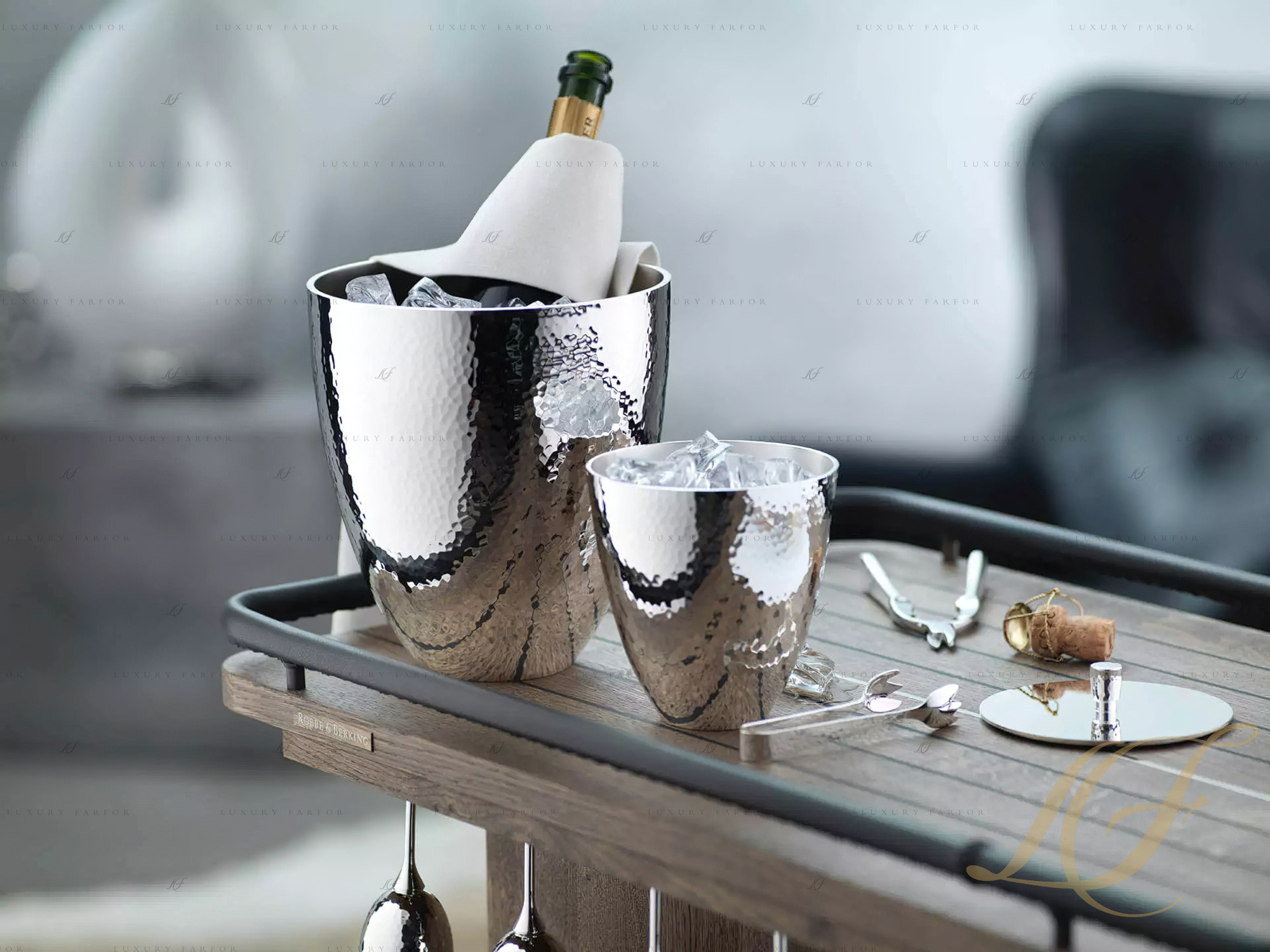 Роббе & Беркинг, Мартеле 90г. массивное Посеребрение Ведро для льда 13,5см