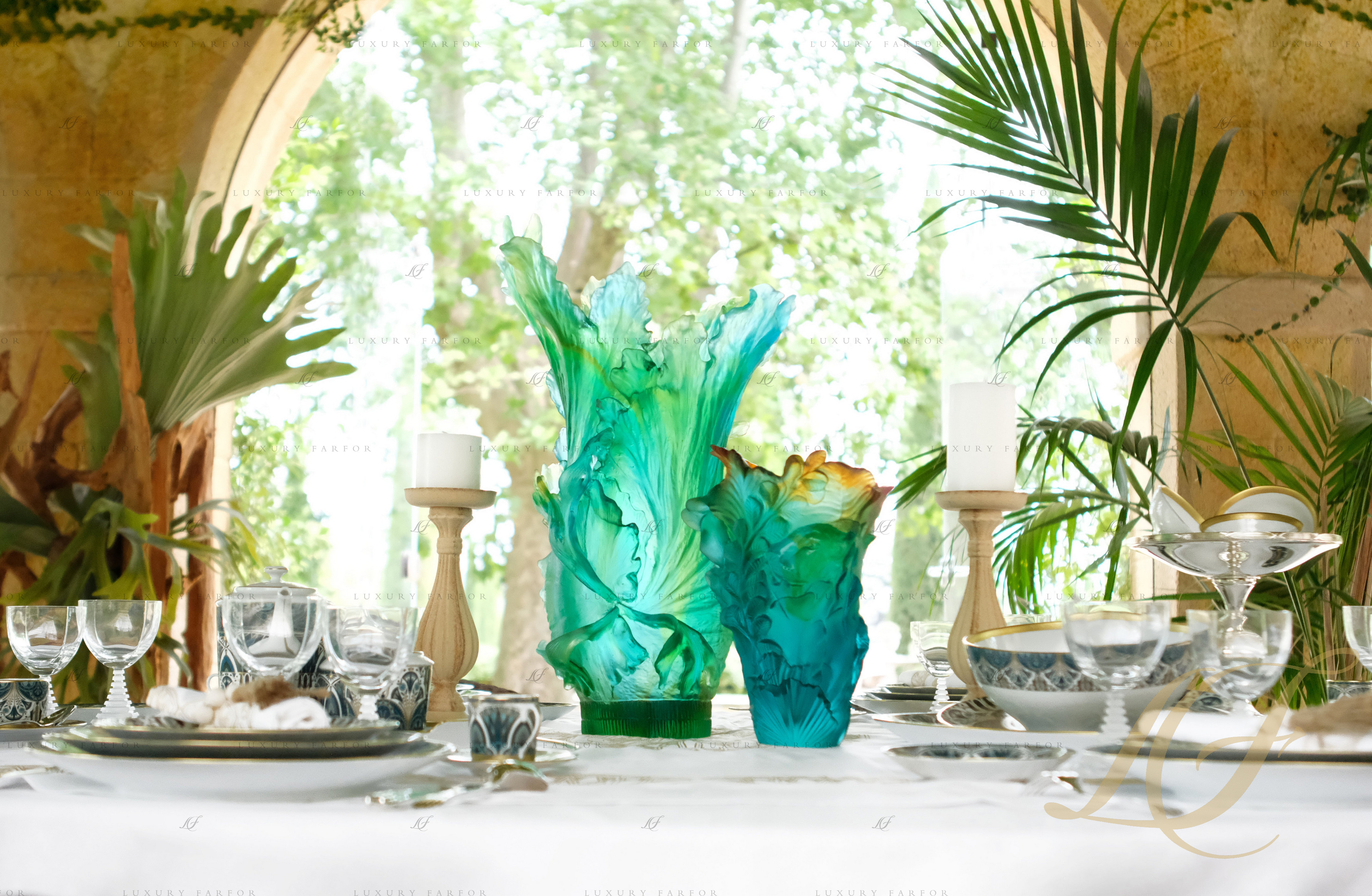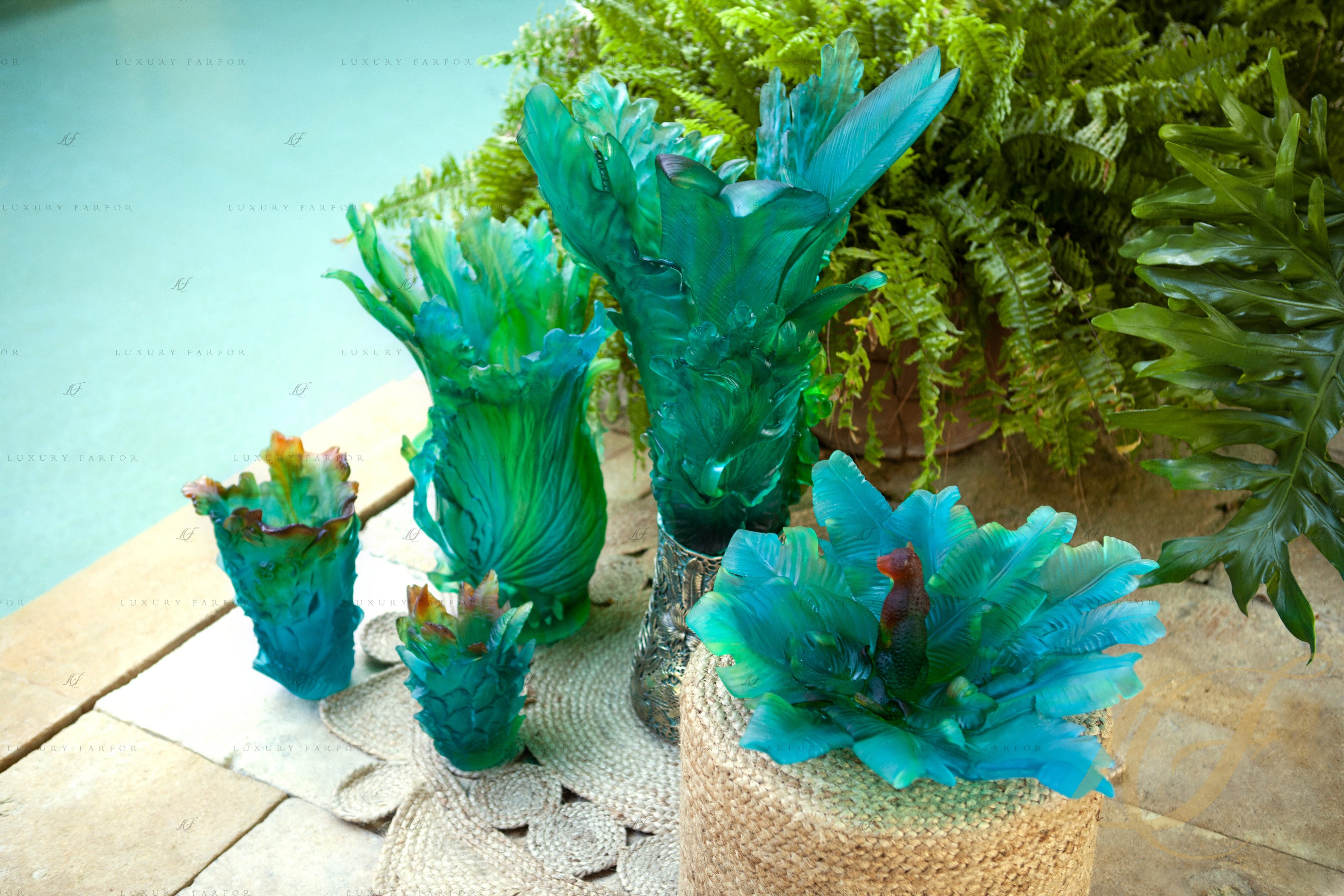 Ваза "Синий, зеленый, янтарный" 32см