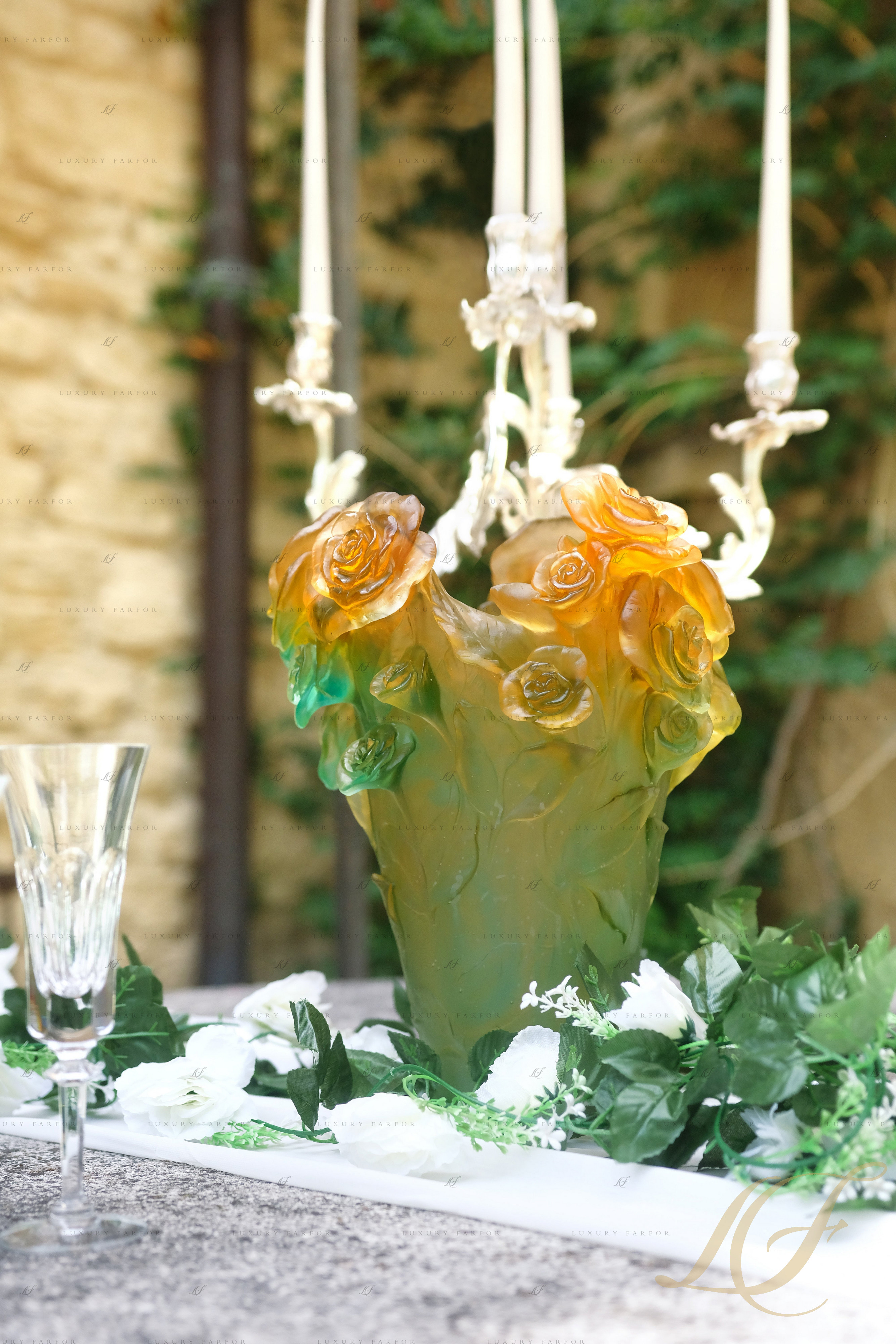 Ваза "Оранжевый, зеленый" 35см