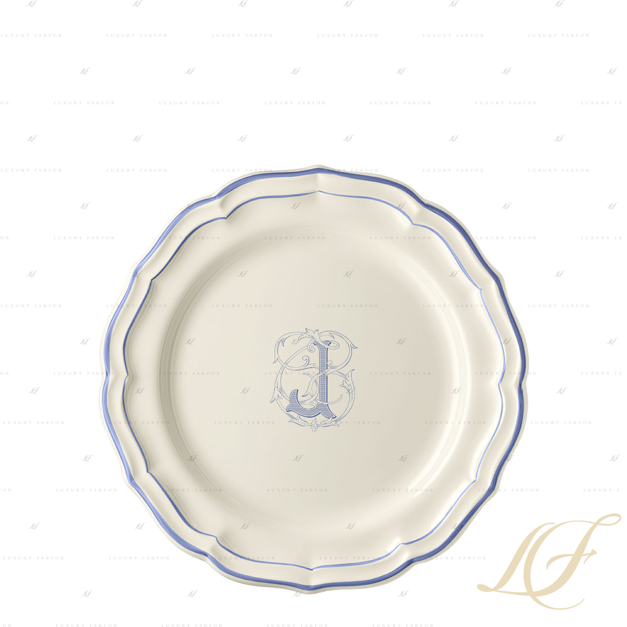 Джиен: Филе Блю Монограм Тарелка главная "J" 26см