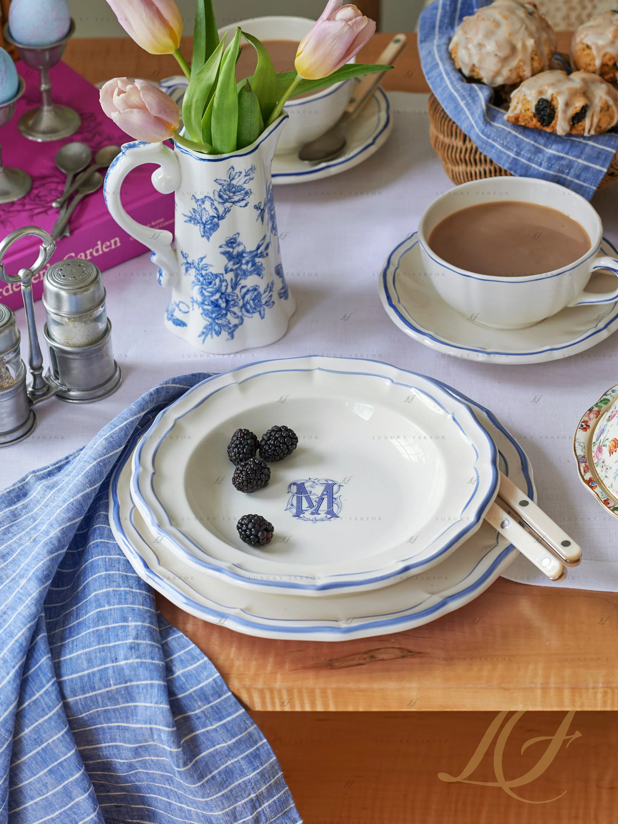 Джиен: Филе Блю Монограм Тарелка глубокая "M" 22,5см