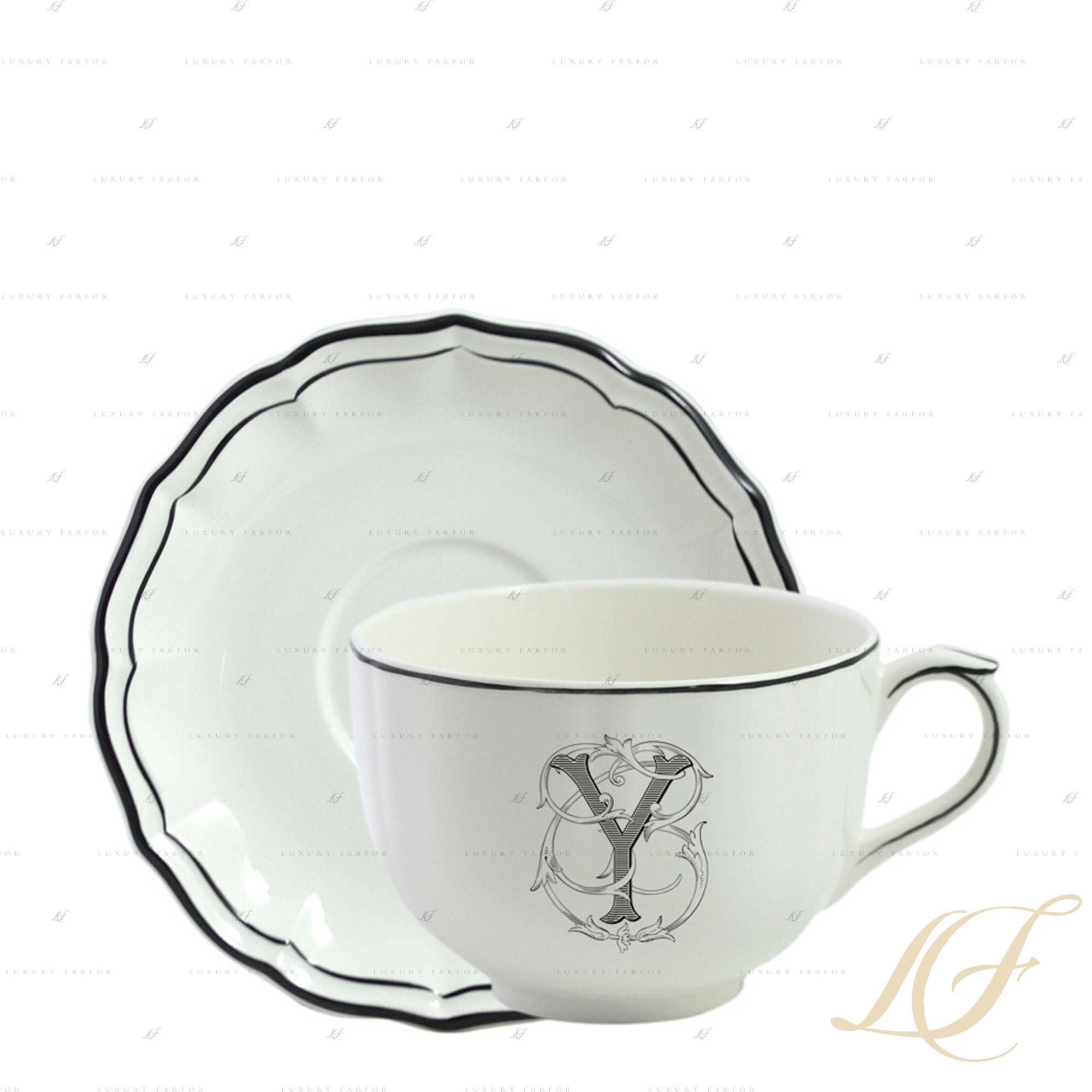 Джиен: Филе Манганезе Монограм Чашка с блюдцем "Y" 0,5л