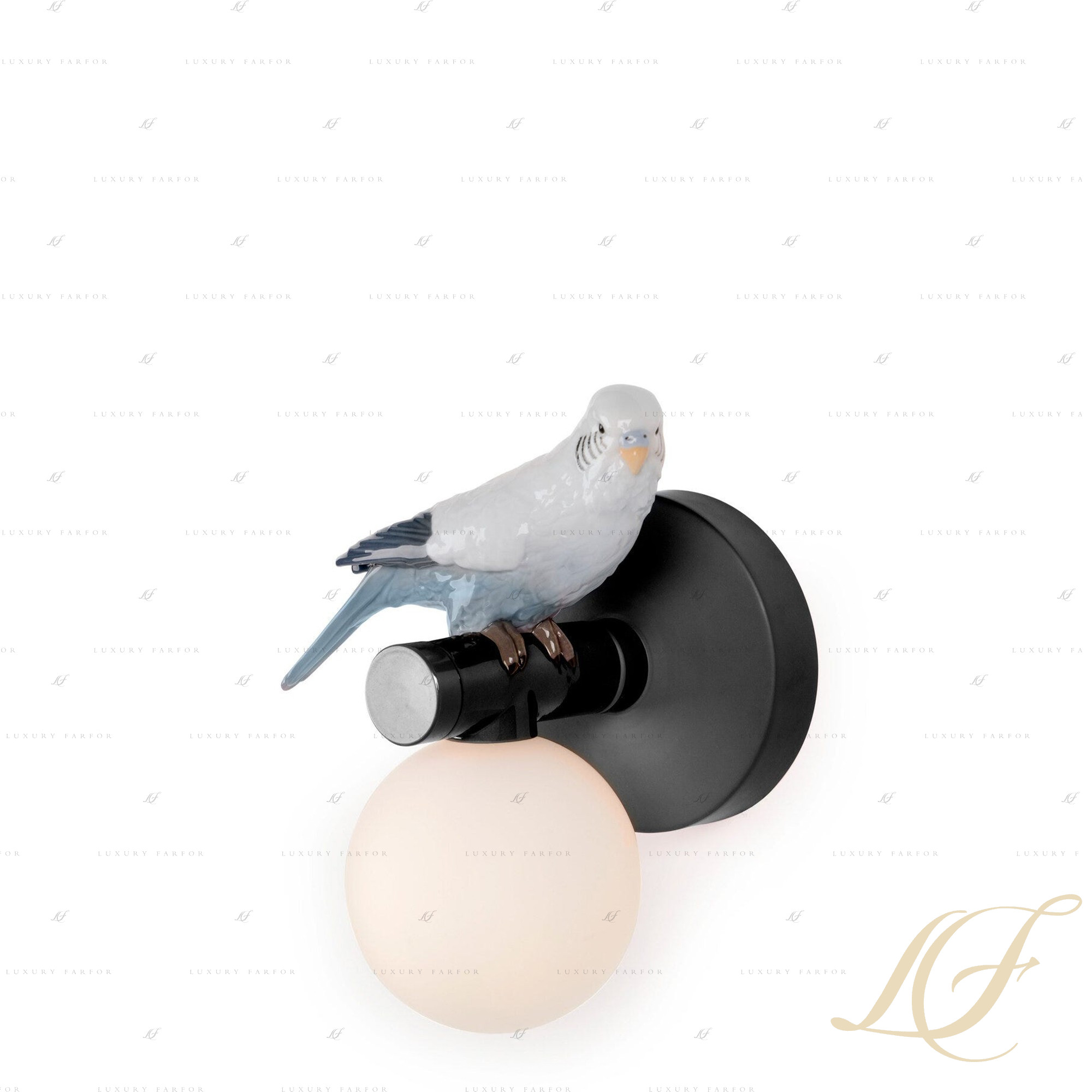 Бра, настенные светильник "Попугай - правый (черный / белый / серый / синий)" 21 х 13см