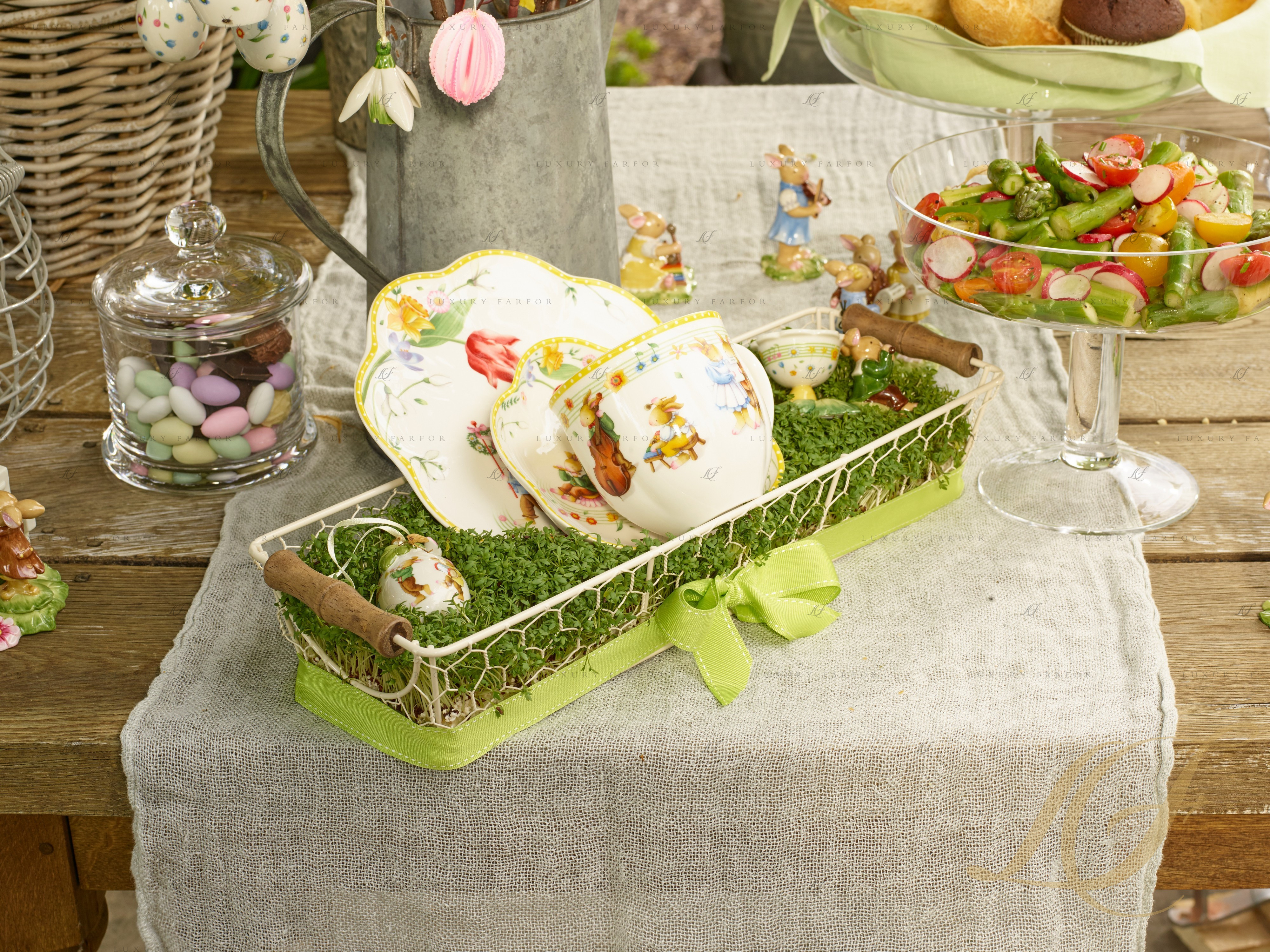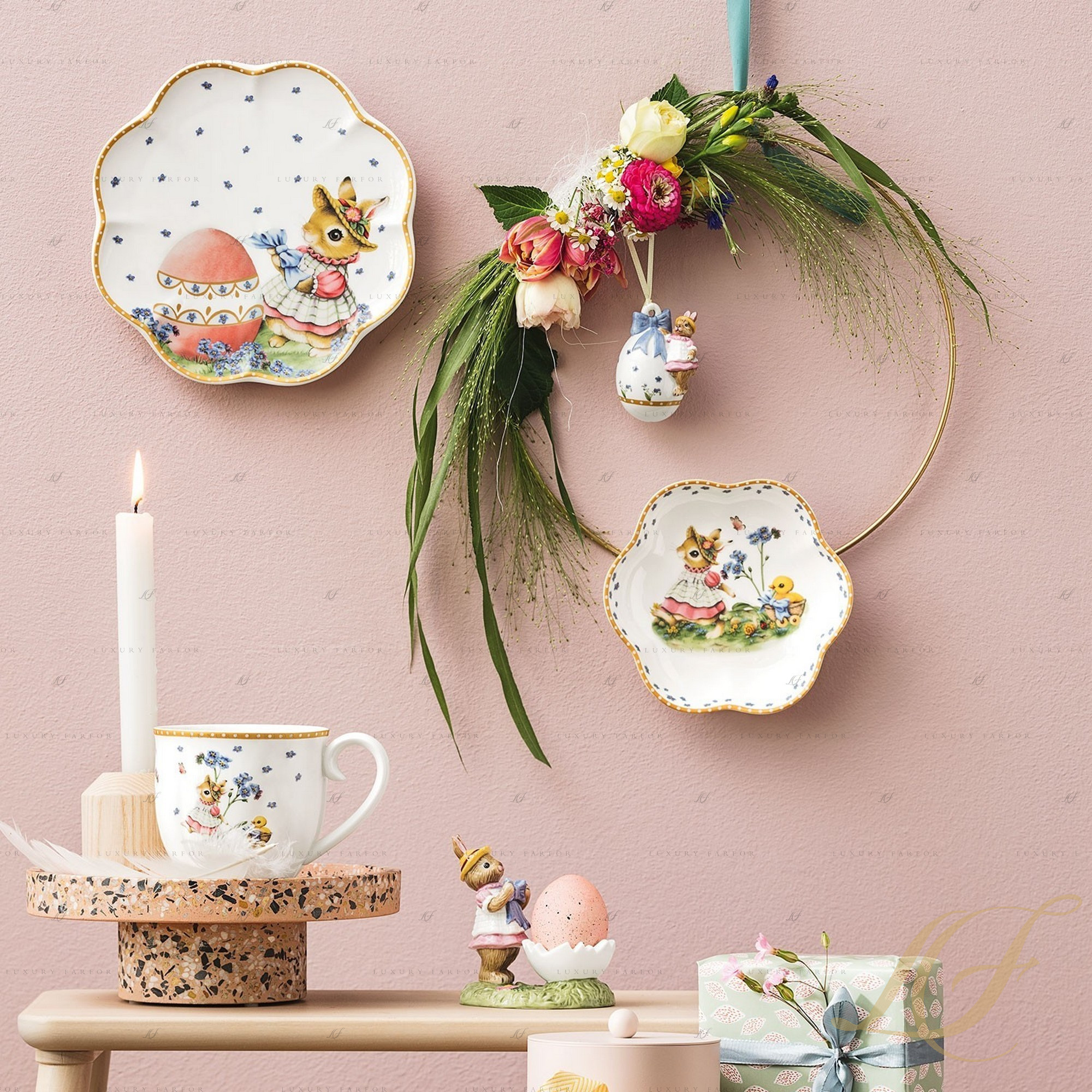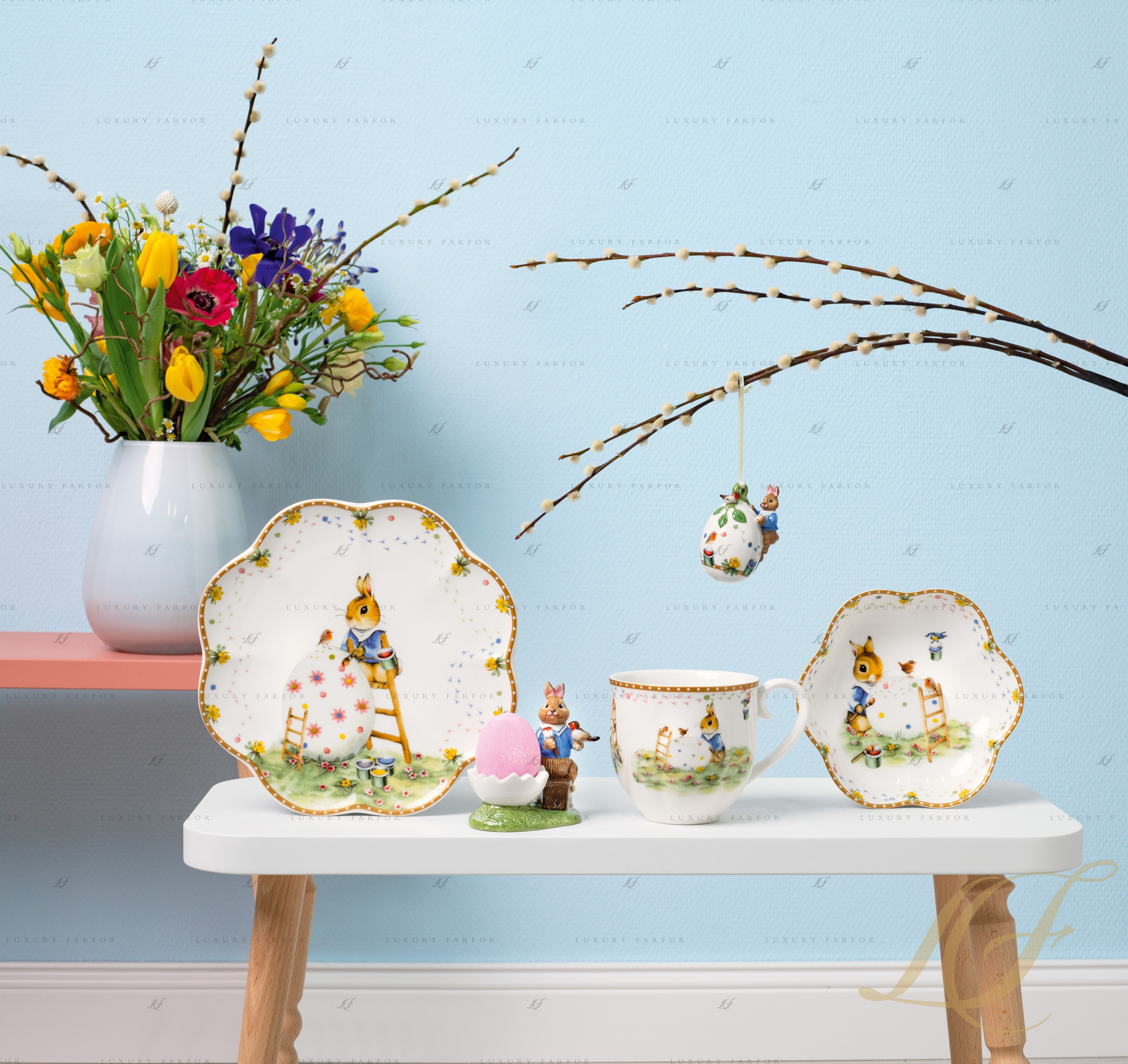 Период пасхальных праздников – один из самых светлых и приятных в году, когда хочется проводить много времени с семьей, собираясь за одним столом. Компания ВБ предлагает украсить дом роскошными декорациями из костяного фарфора из коллекции Annual Easter Edition. Немецкий бренд ежегодно радует своих поклонников новыми тематическими декорациями к Пасхе, и этот год не стал исключением. Так, каталог праздничных аксессуаров пополнили декоративные подвески и посуда, украшенные яркими иллюстрациями. Нас знакомят со сказочным кроличьим семейством – папой-кроликом, крольчихой и двумя крольчатами.