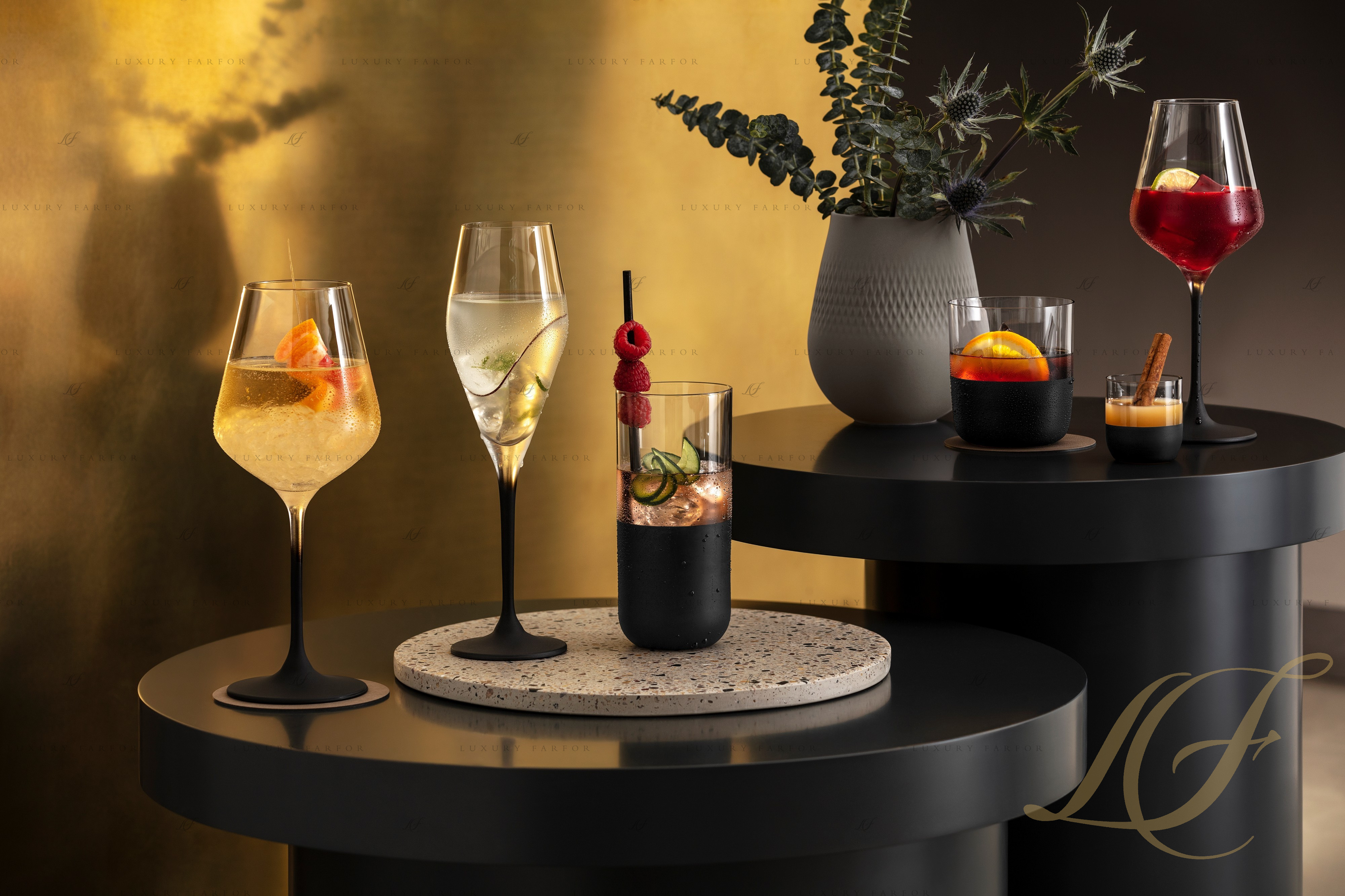 Коллекция Manufacture Rock – одна из самых запоминающихся в каталоге торговой марки «Виллерой и Бох». Глубокий черный цвет с матовым финишем доминирует в декоре большинства изделий в этой линейке. Бокалы не стали исключением: основная часть каждого из них выполнена из прозрачного хрусталя, однако тонкие ножки предстают перед нами в насыщенном черном цвете. Плавный градиент от невесомой верхней части к черному основанию бокала выглядит невероятно стильно. В сочетании с черной фарфоровой посудой, черными столовыми приборами и такими же аксессуарами эти бокалы составят поистине впечатляющий тандем.