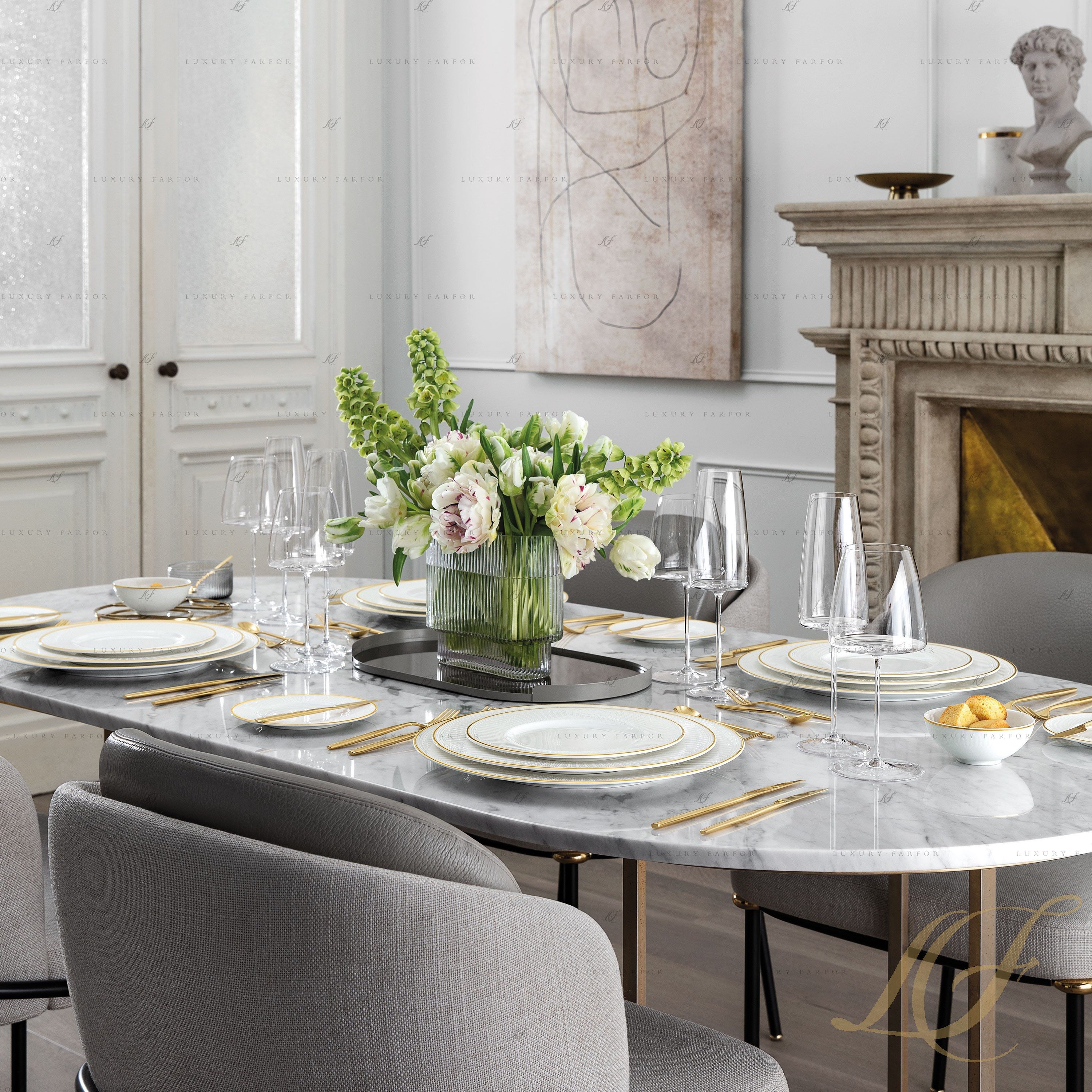 Материал Костяной фарфор, Золото