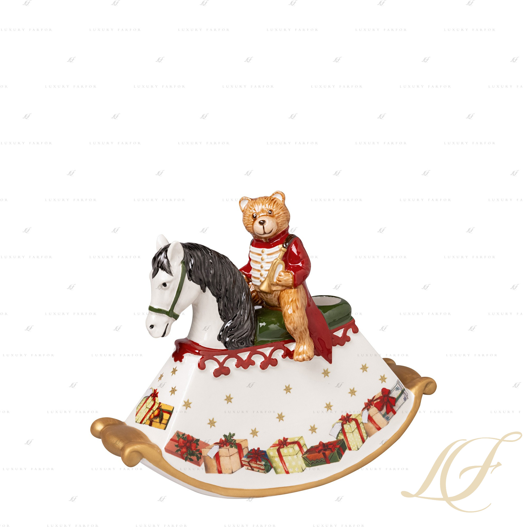 Статуэтка "Медвель на лошаде-качалке" 23см