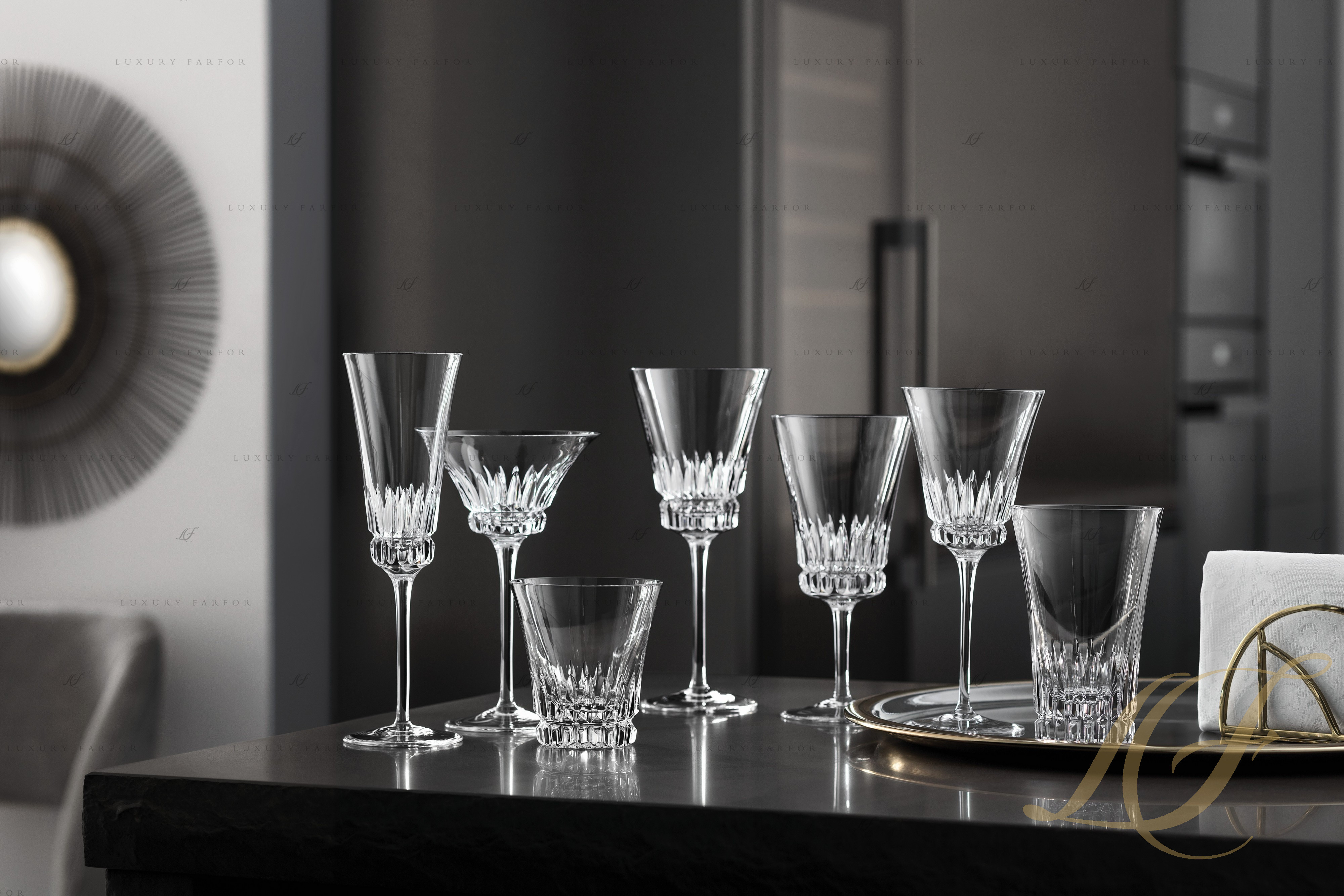 Хрустальные бокалы из коллекции Grand Royal от торговой марки ВБ созданы для праздничной атмосферы. Очаровательный винтажный стиль этой линейки выглядит роскошно и настраивает на романтический лад. Чаши фужеров имеют форму перевернутого колокола, при этом основание каждого из них украшено художественной огранкой. Узкие высокие ножки бокалов придают им восхитительную грациозность. В линейке представлены фужеры для всех видов вин, включая белое, красное, игристое, а также элегантные бокалы для воды. Несколько моделей стаканов, выполненных в том же стиле, составят единый ансамбль с бокалами.
