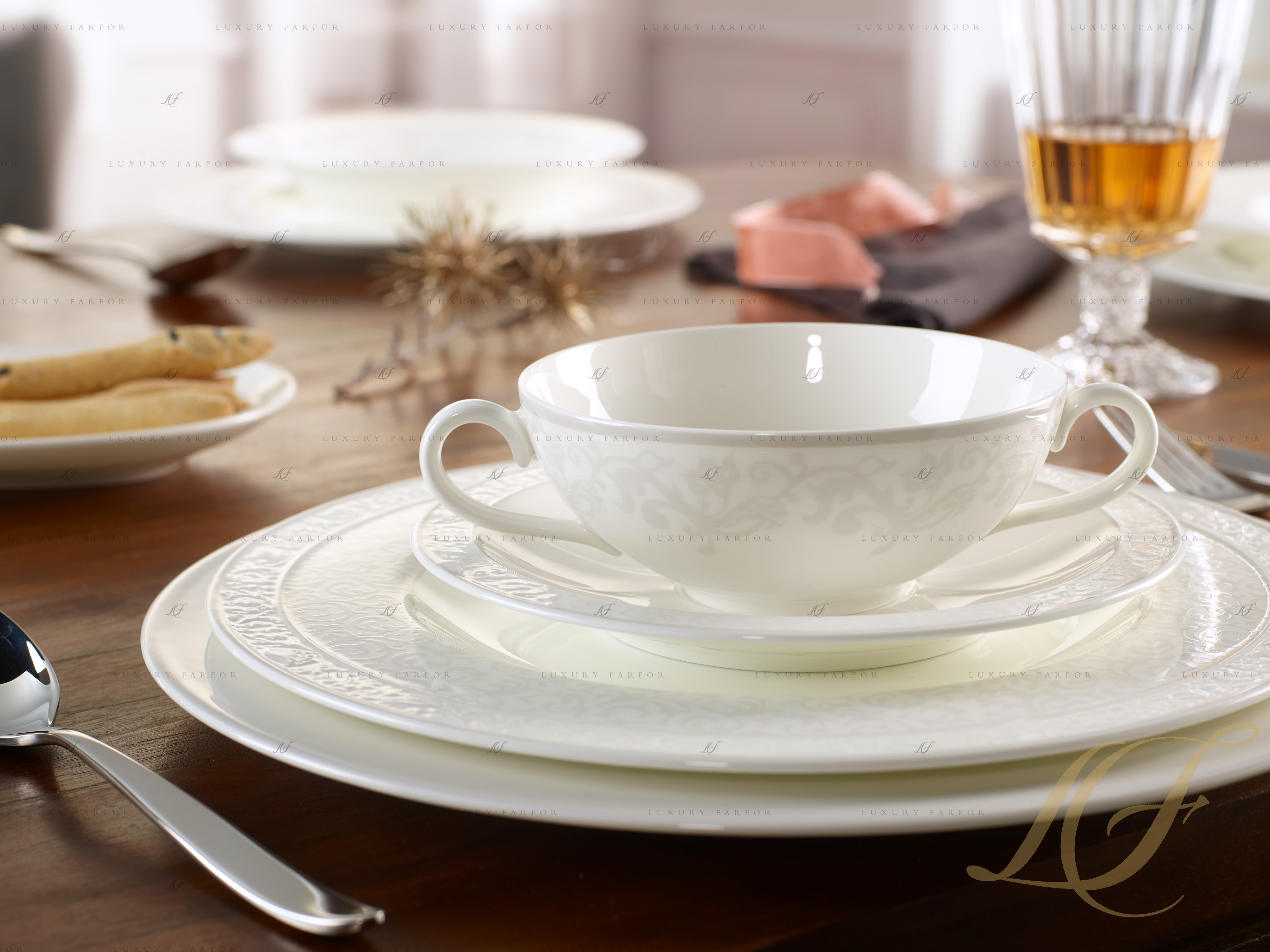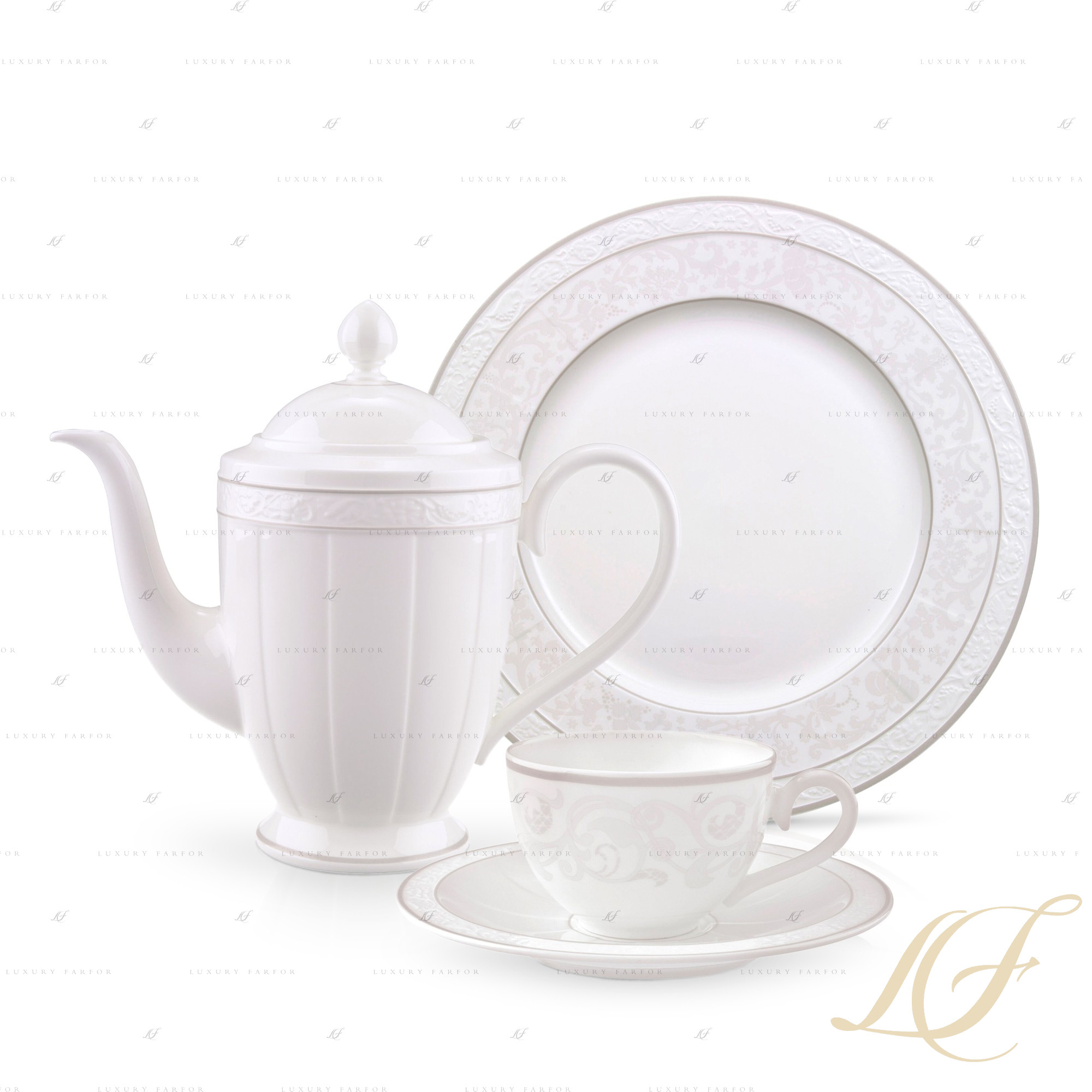 Посуда из коллекции Gray Pearl обладает неповторимым шармом и благородностью. Выполненный из белого костяного фарфора, сервиз наделен тем деликатным характером, который очаровывает с первого взгляда. Посуда классической формы декорирована едва заметным флористическим орнаментом, детали которого можно изучить лишь при ближайшем рассмотрении, благодаря нежному жемчужно-серому цвету эмали. Сервиз Gray Pearl от ВБ превосходно смотрится на как праздничном, так и на повседневном столе. Порадуйте себя и своих близких фарфоровой посудой ручной работы.