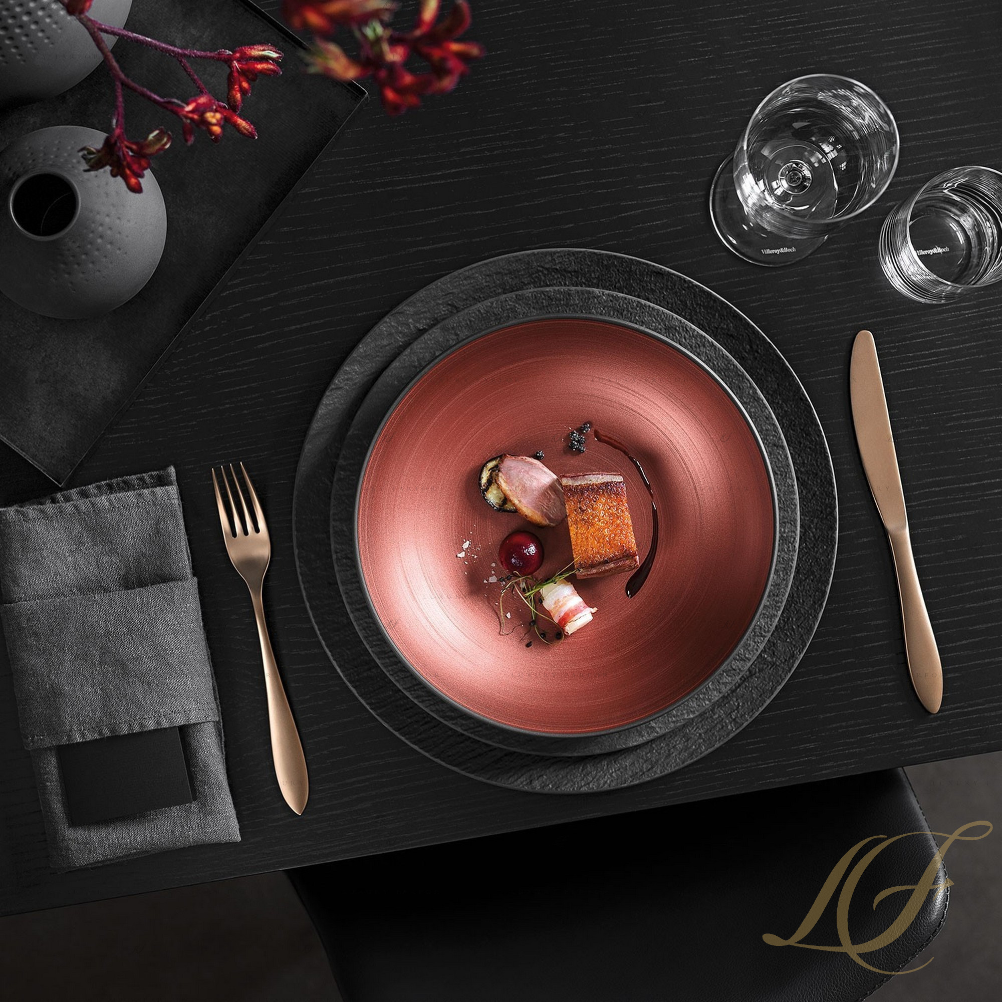 Коллекция фарфоровой посуды Manufacture Rock Glow от ВБ создана для тех, кто любит окружать себя стильными вещами. Роскошная комбинация из матовой черной эмали и внутреннего глянцевого покрытия бронзового цвета формирует многогранную картину, где противоположные текстуры прекрасно соседствуют, не противореча друг другу. Глубокие тарелки и бульонные чаши из серии Rock Glow составят эффектную компанию черной и бронзовой посуде из большой коллекции Manufacture, выступив объединяющим звеном между двумя такими разными декорами. Кроме того, чаши станут ярким дополнением классического белого сервиза.