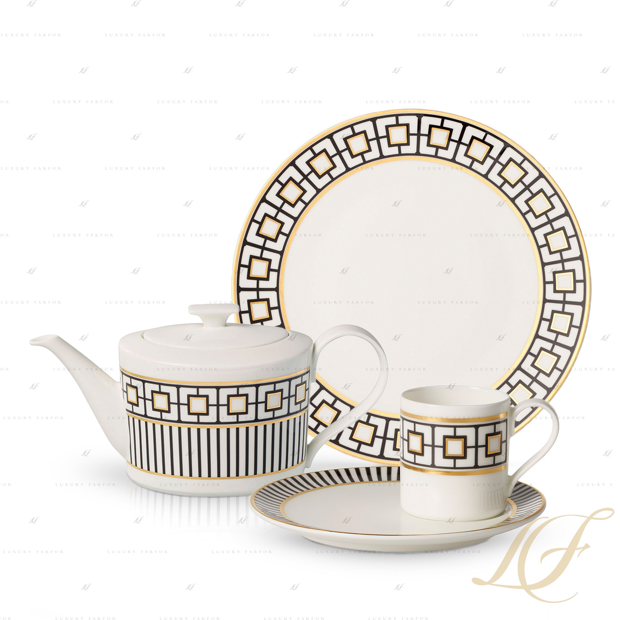 Коллекция фарфоровой посуды MetroChic от торговой марки Villeroy&Boch возвращает нас в ту эпоху, когда в моде было направление ар-деко. Посуда из высококачественного фарфора декорирована геометрическим мотивом черного цвета, расположенным на белом фоне. Аккуратные детали из благородного золота расставляют необходимые акценты, придавая данному мотиву динамичность. Декор меняется от предмета к предмету, открывая массу возможностей в оформлении сервировки. Сервиз включает стандартную посуду для классического оформления стола, а также специальные предметы для подачи закусок, десертов и других блюд.