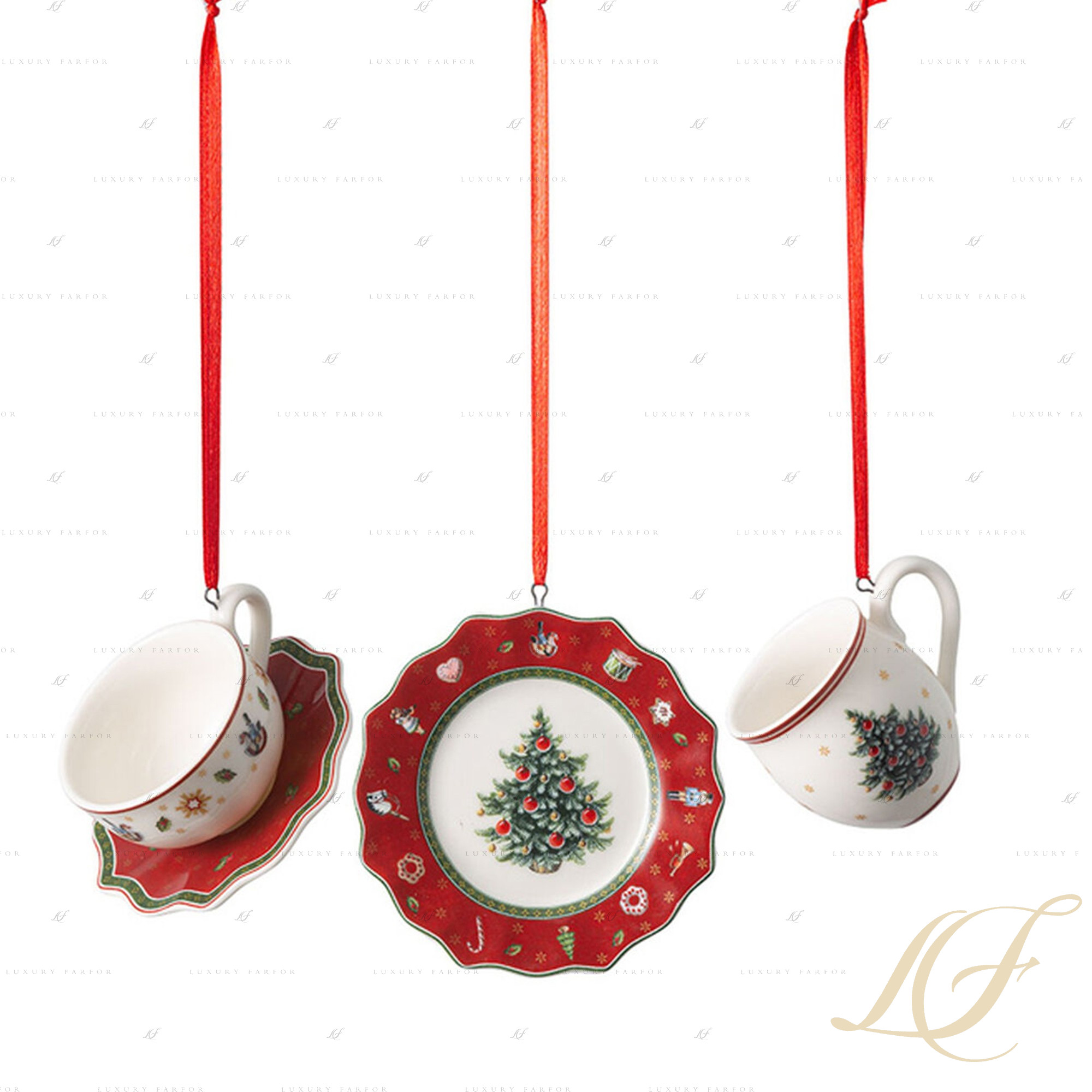 Украшение "Набор посуды" (Красный) 7см, 3шт.