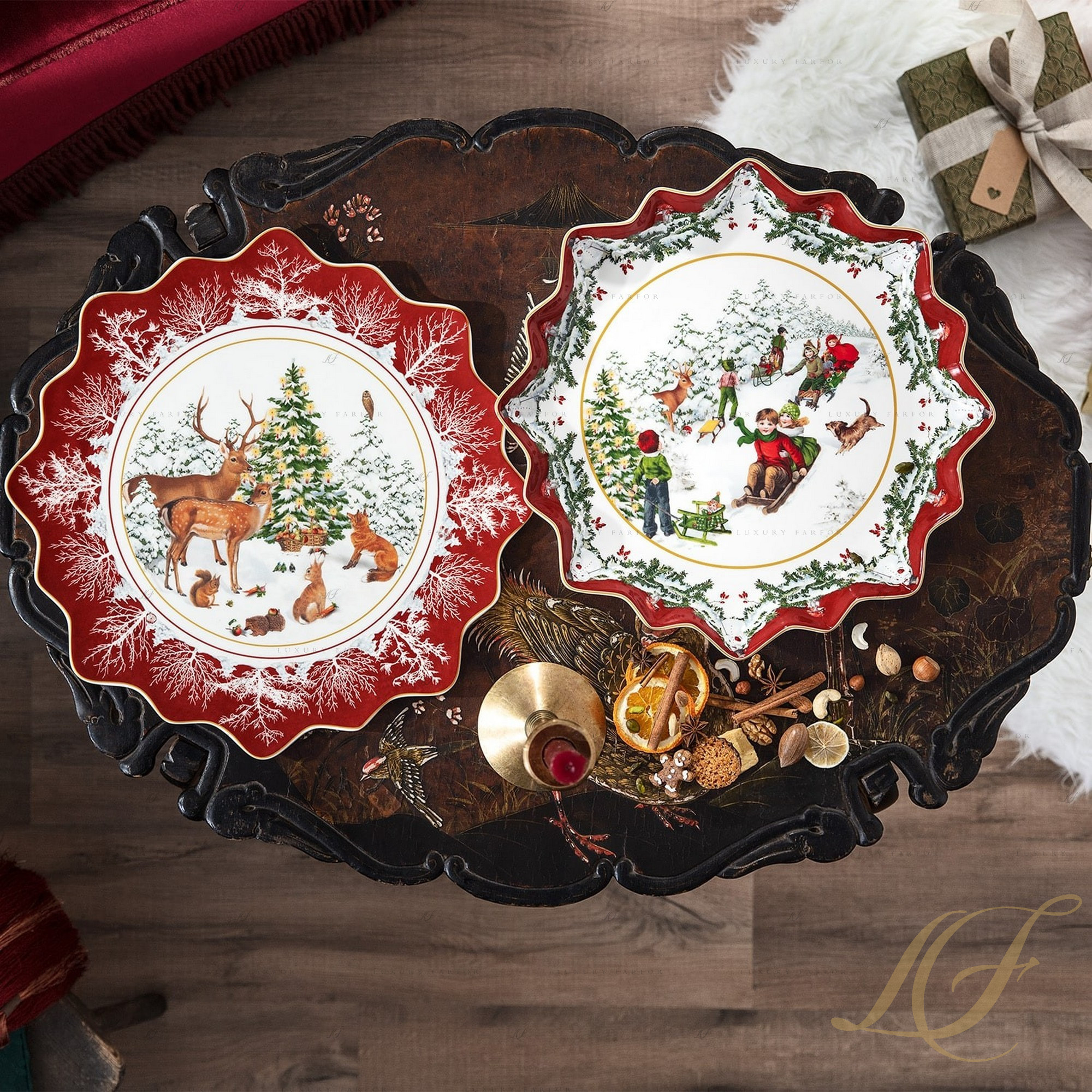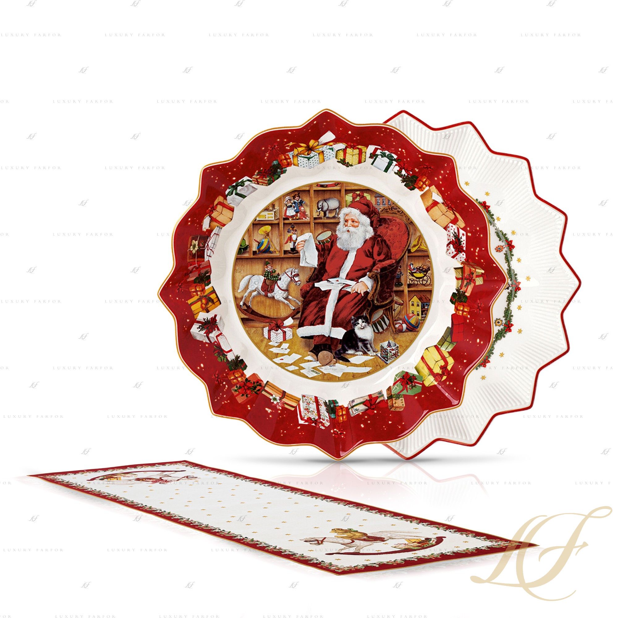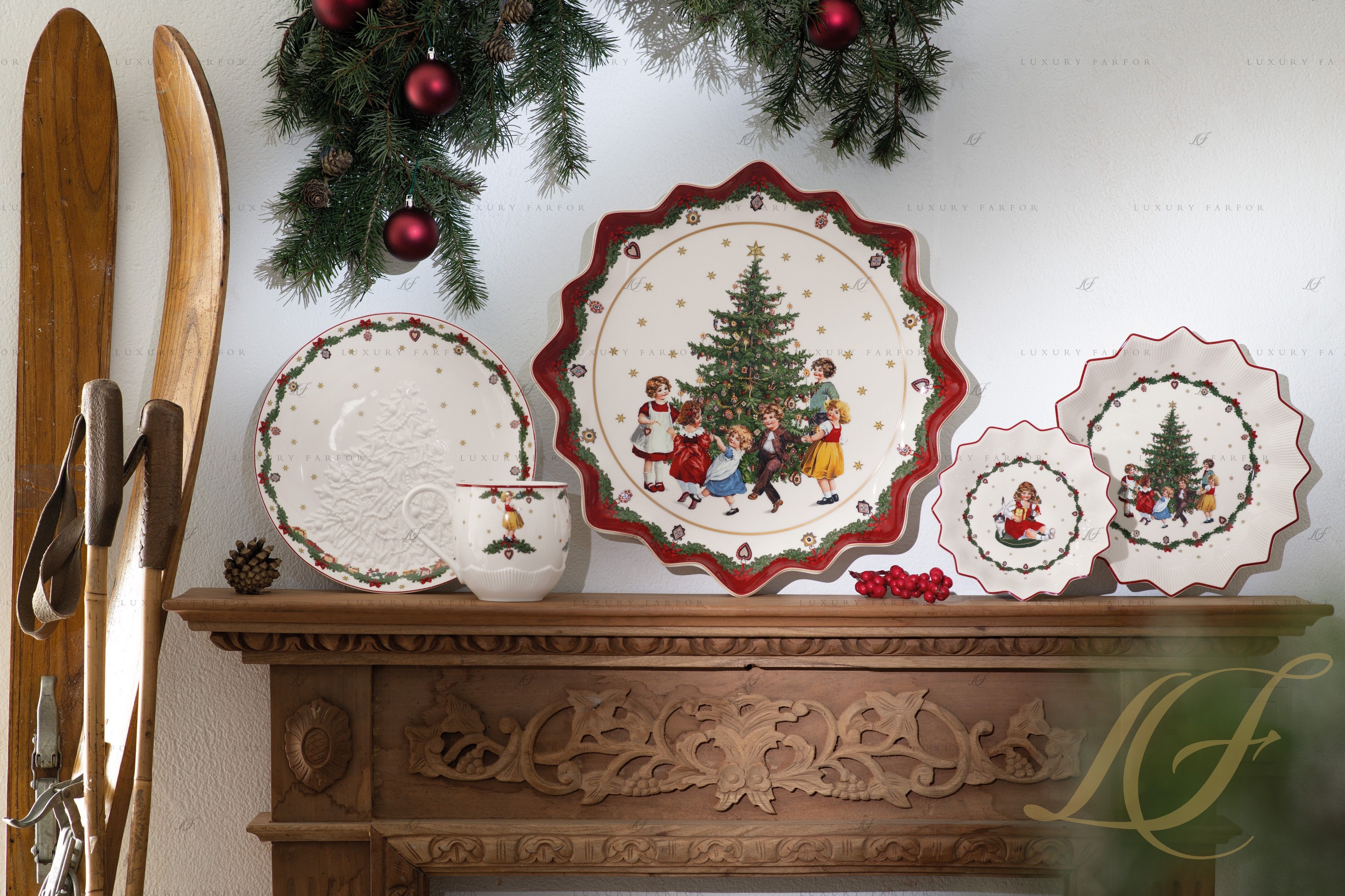 Коллекция фарфоровых аксессуаров Toy's Fantasy от немецкого бренда Villeroy & Boch создана дарить тепло и поддерживать уютную атмосферу в доме, что особенно ценно в холодное зимнее время года. В серию вошли блюда и тарелки из высококачественного фарфора, декорированные сюжетными иллюстрациями. Словно книга, посвященная добрым Рождественским историям, коллекция показывает нам отдельные красочные эпизоды: дети играют в гостиной возле елки, в окошко заглядывает Санта, держа в руках большой мешок с подарками, камин с горящими поленьями – вот только некоторые образы, использованные в этой серии фарфоровых аксессуаров. Красочные иллюстрации в ярких, традиционных для Рождества красках дополнены объемным тематическим декором, который делает посуду не только эстетичной, но и тактильно приятной. Обилие красного цвета и резные края предметов усиливают праздничный эффект коллекции Toy's Fantasy от Villeroy & Boch.